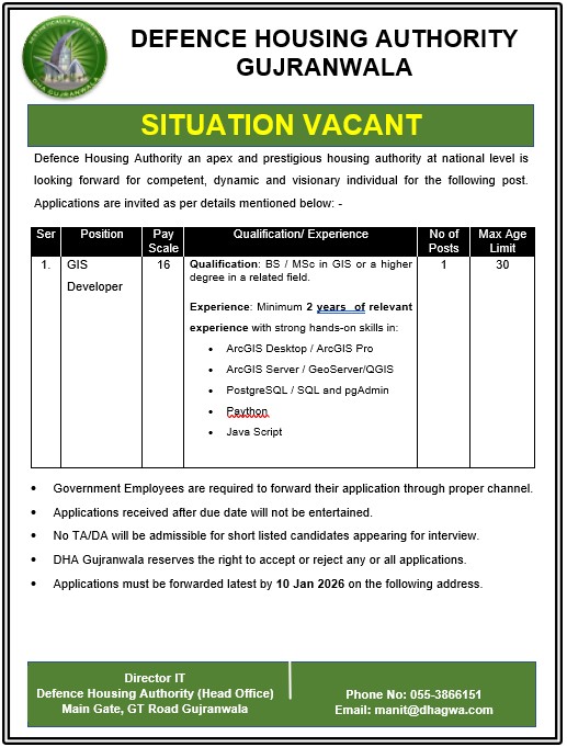 Situation Vacant at DHA Gujranwala